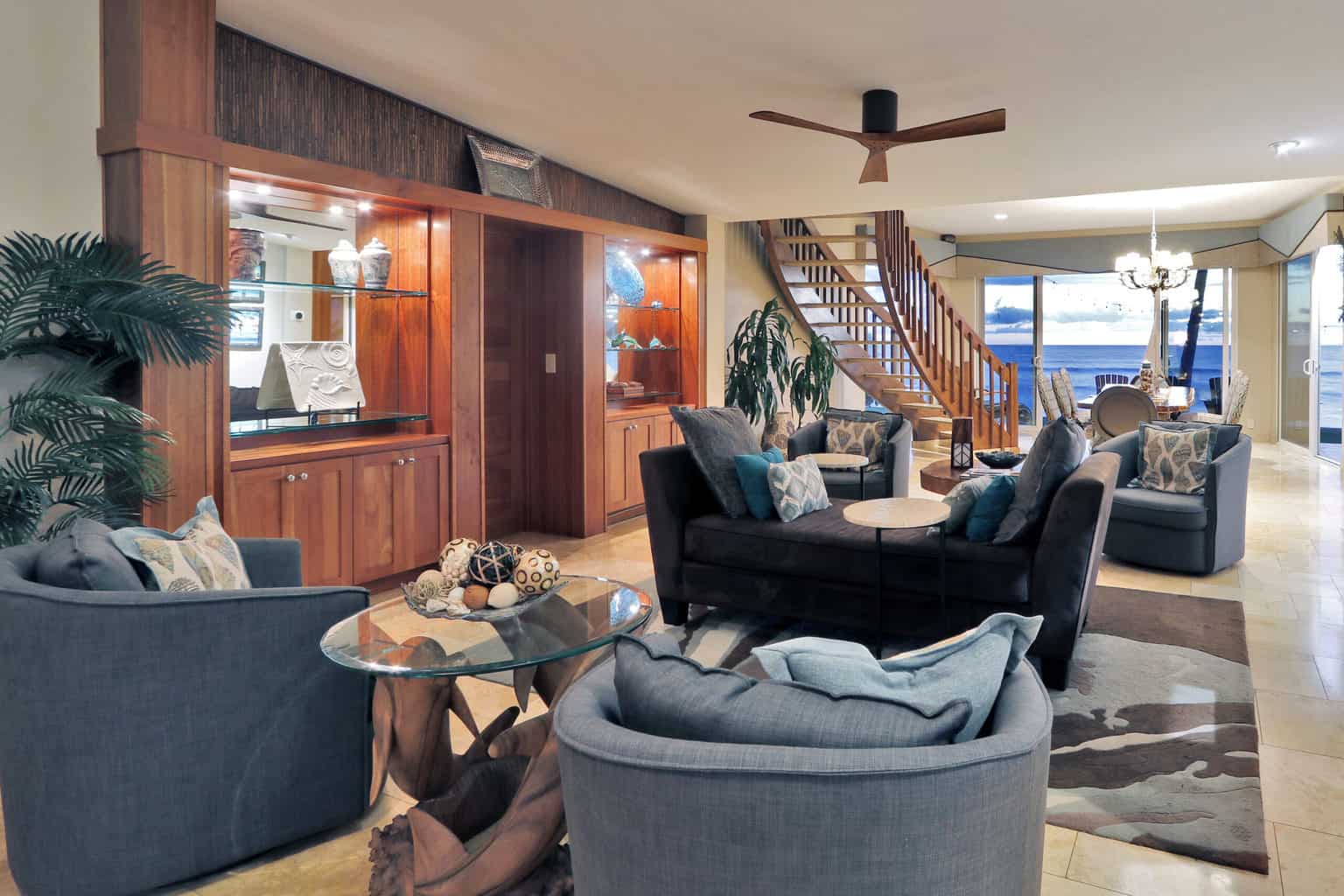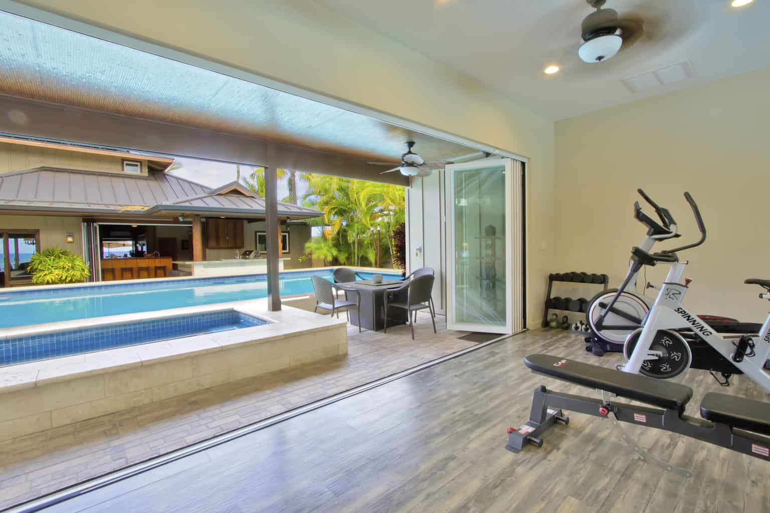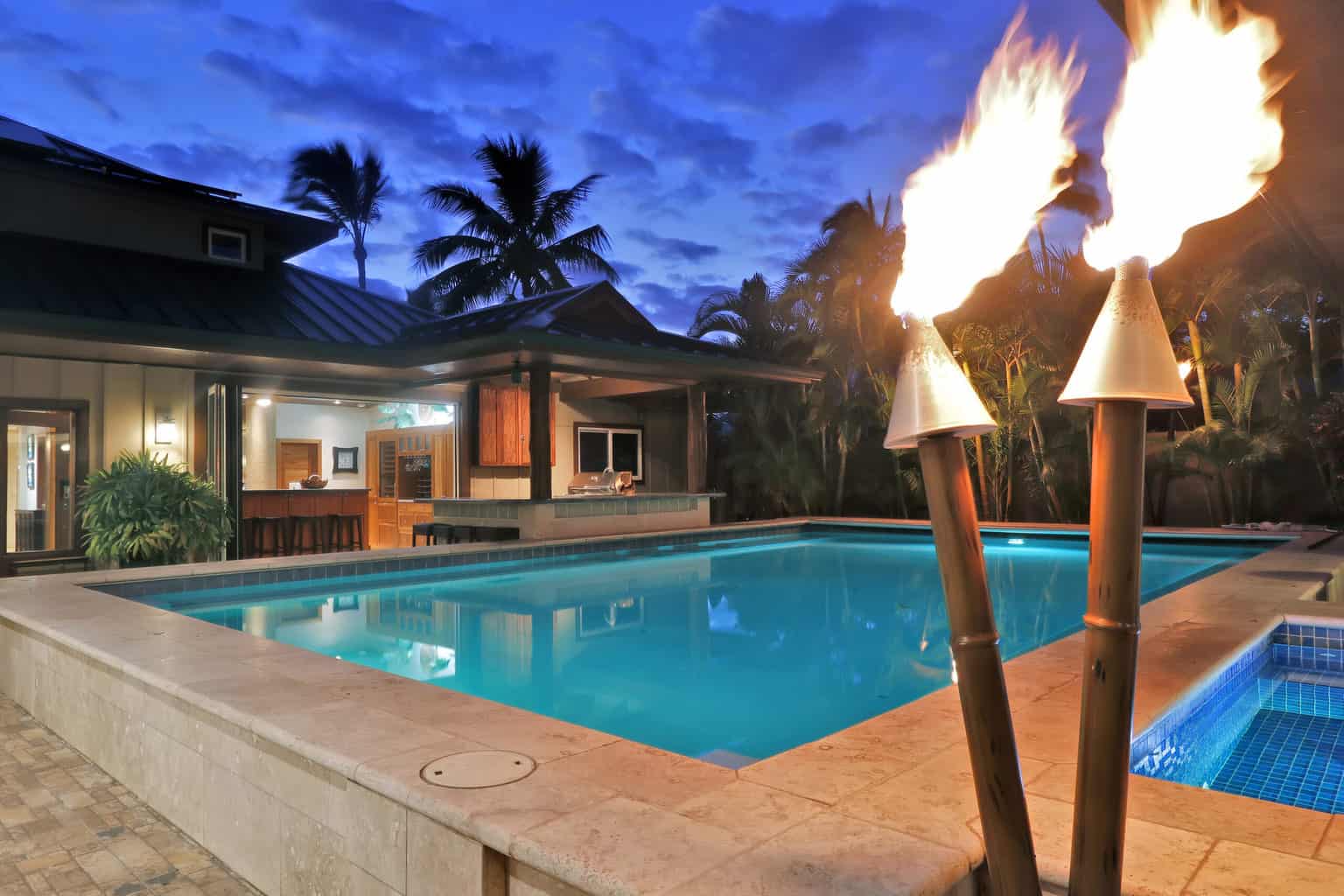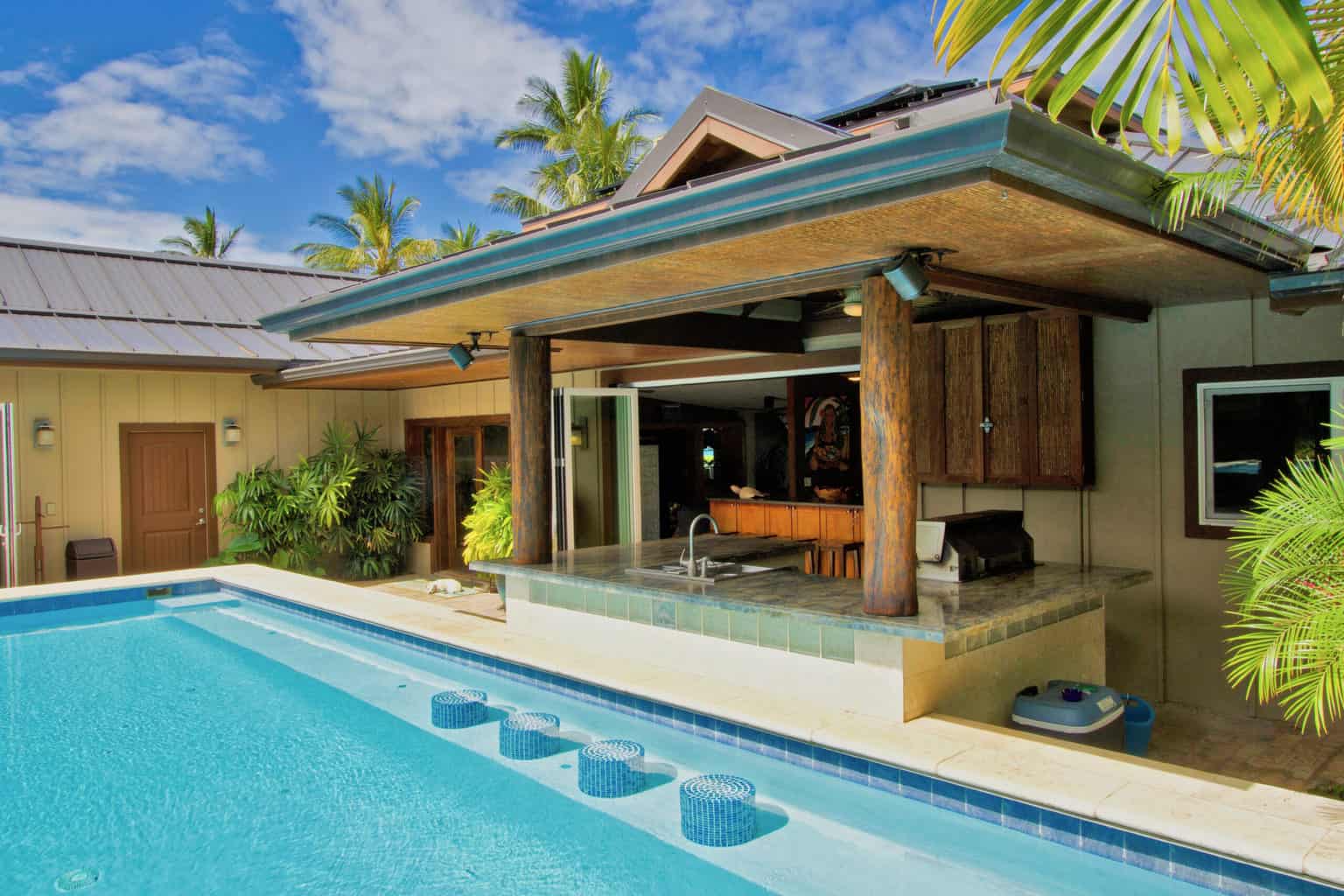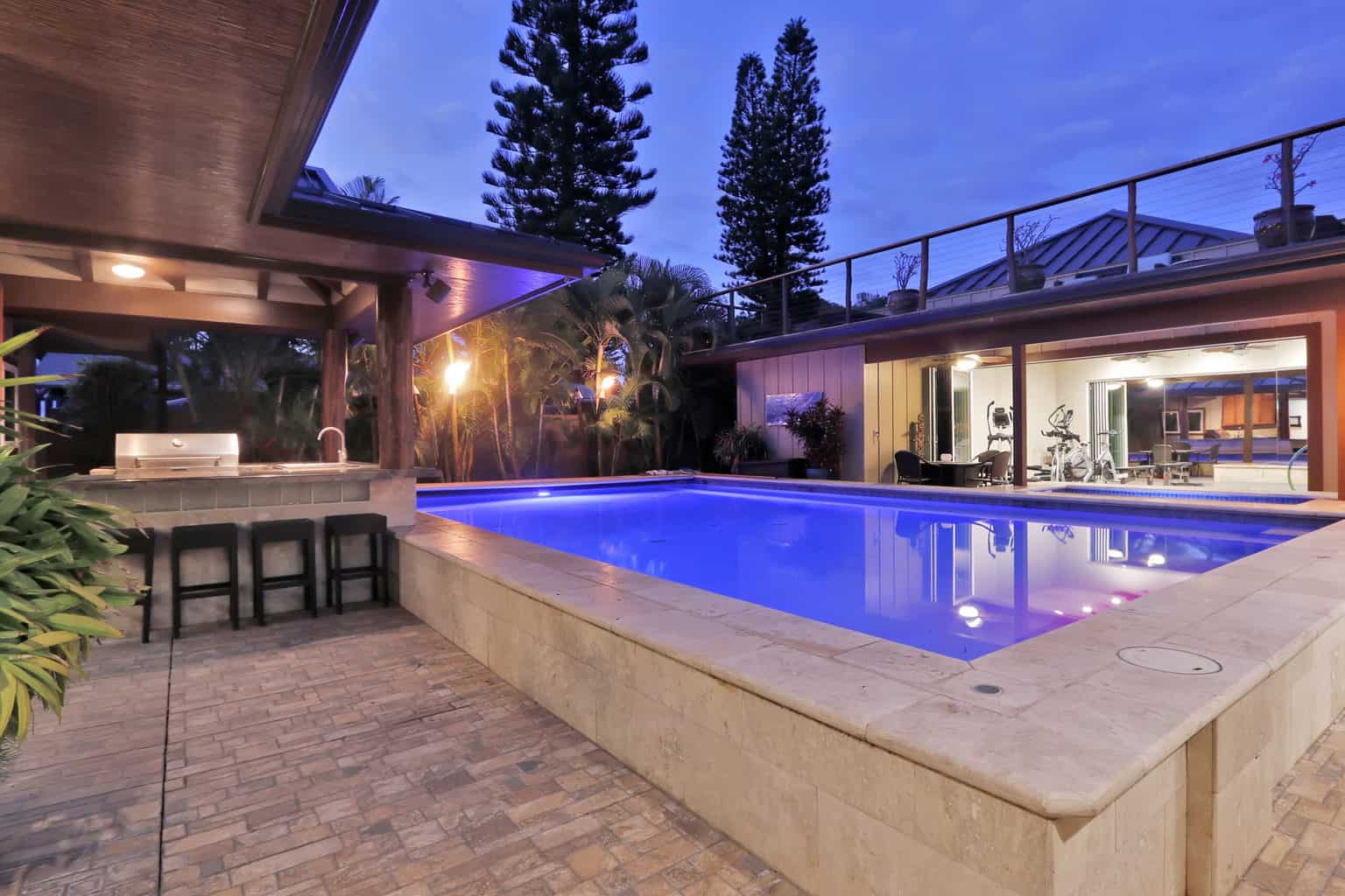 Rarely… but sometimes a gem comes on the market. That gem is 1676 Halama Street. This property needs to be experienced and not just written about to truly understand its beauty and essence. It is a double-gated property sitting high on Halama Street (main home is not visible from the road) The owners have taken a designer’s eye and brought meticulous attention, time, care and cost to create this resort-like residence, complete with movie theater, fitness area, ocean-side putting green, swim-up pool bar, ocean and star viewing deck and so much more. I mentioned all the amenities near Halama, and well, with this property there is hardly a reason to leave its gates.