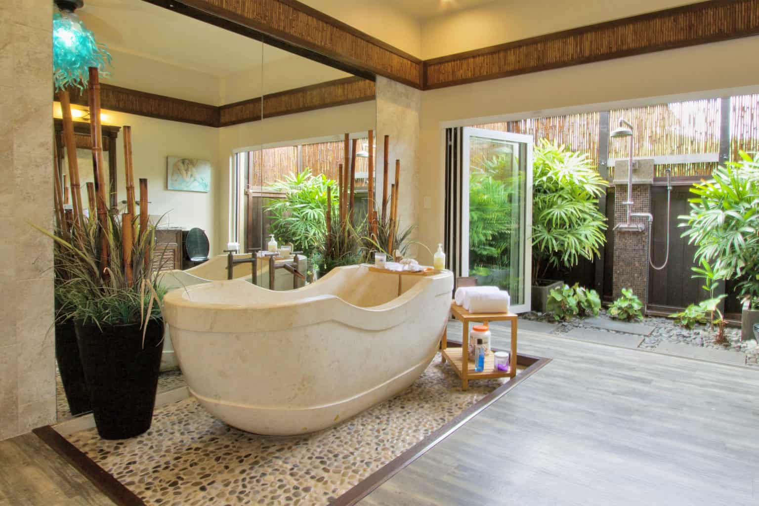 Two Master Bedroom Suites (Upper Master Bedroom has private lanai and ensuite master bath, First Floor Master Bedroom has 2 ensuite bathrooms, and outdoor shower)