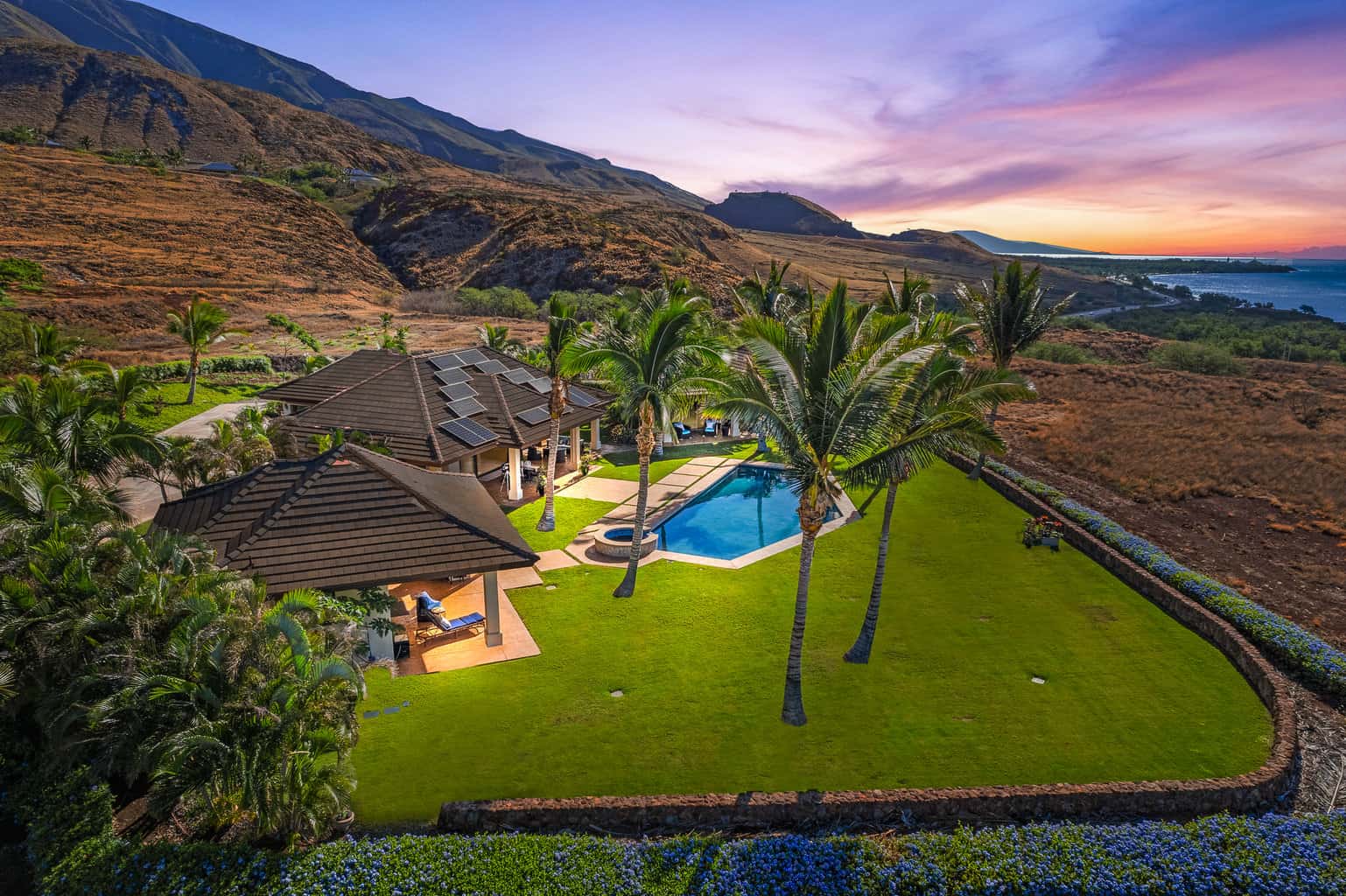 Mornings may begin with the simple pleasure of sipping Hawaiian-grown coffee outside on your lanai. As you step outside, you are greeted by the serenity of the Pacific Ocean and the vibrant hues of the sky. Whether opting for an invigorating jog/walk along your very own nearly half-mile palm tree-lined driveway or indulging in a tranquil yoga session with the vast ocean as your backdrop, the start of the day sets the tone for a life filled with wellness and serenity.