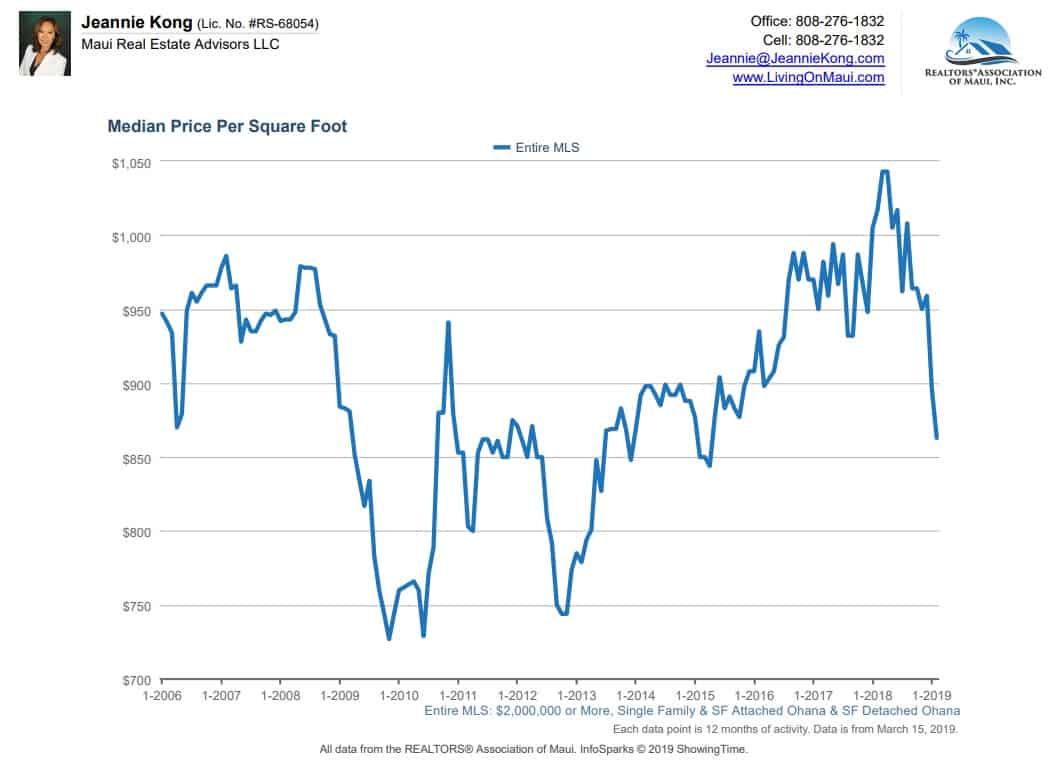MEDIAN PRICE PER SQUARE FOOT FOR MAUI LUXURY HOMES